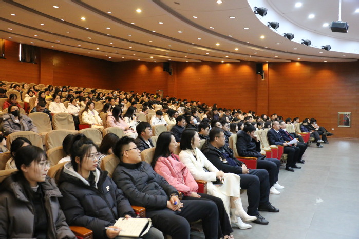 尹忠教授紧密结合习近平总书记关于教育的重要论述,从立德树人是教育的根本任务、如何做“四有”好老师等方面,深刻阐述了立德树人的深刻内涵和时代要求。报告深入浅出、旁征博引,用丰富生动的事例从不同侧面诠释了良好师德师风的内核,分析了目前师德师风建设方面存在的问题和不足,并对师德师风建设提出了意见建议。其中,“仁爱之心是关键”“为人师表是根本”“完善自我是保障”等理论观点,引发在场教师的强烈共鸣和深入思考,为全校教师加强师德师风建设提供了有力的理论指引和行动遵循。