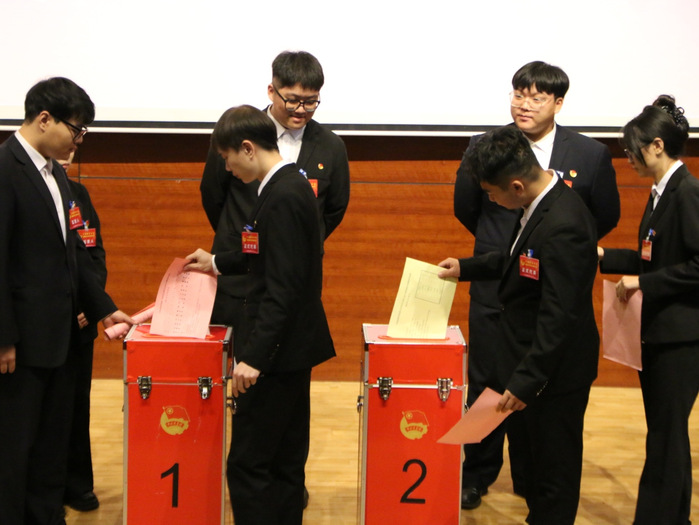 学校团委社团管理科科长王丹童宣读会议通过的决议。按照议程,大会审议并通过了《长春建筑学院第二十四届学生会组织工作报告》《长春建筑学院第五次学生代表大会提案工作报告》《长春建筑学院学生会组织主席团及学生会委员会选举办法》。大会以无记名投票的方式选举产生了长春建筑学院第二十五届学生会主席团和学生会委员会委员。