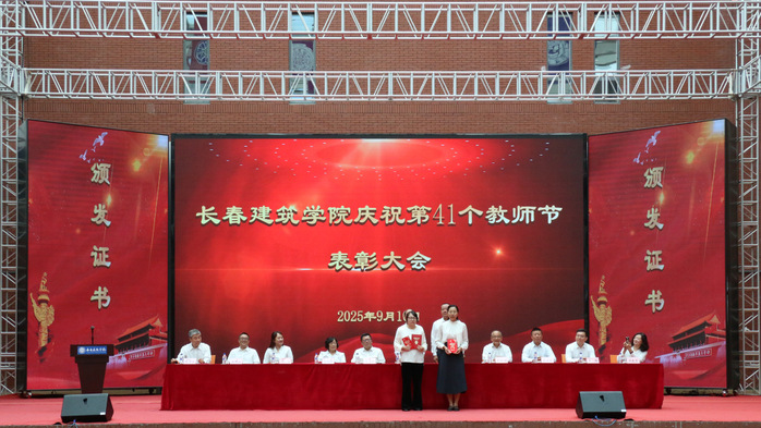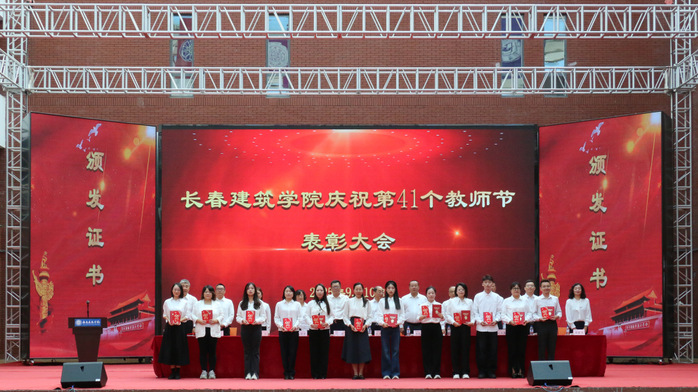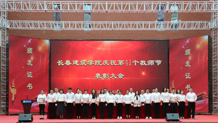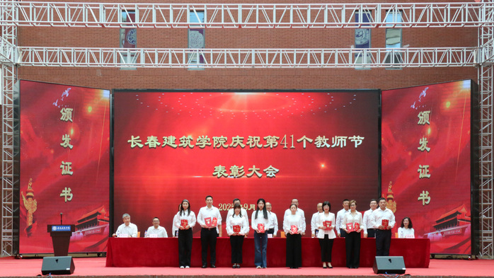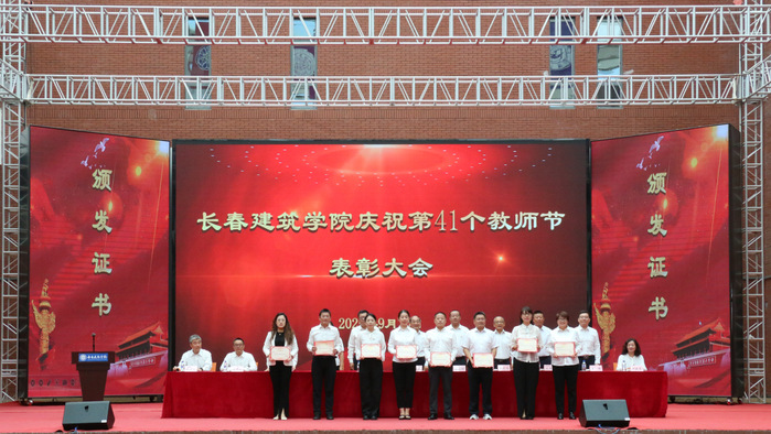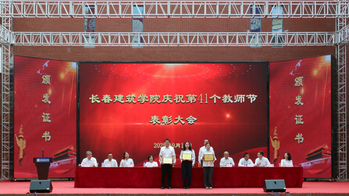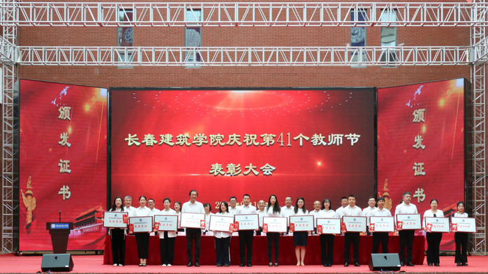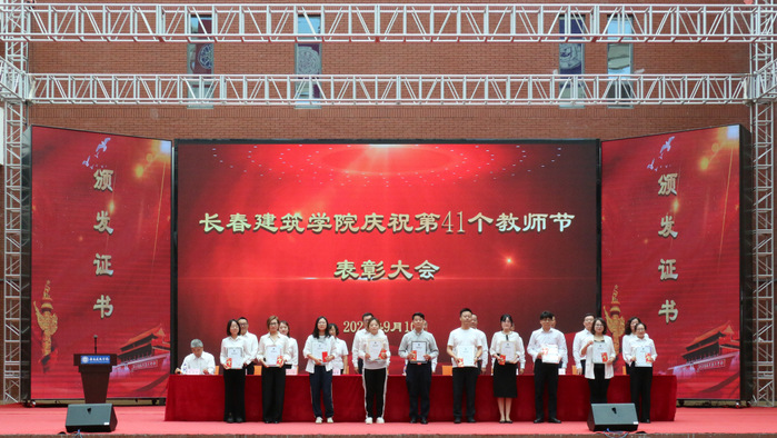 学校执行校长孙雷宣读了《关于授予建筑与规划学院何玉会、土木工程学院刘玲等15名教师“师德标兵”称号的决定》《关于表彰第三批国家级一流本科课程教学团队的决定》《关于表彰吉林省特色高水平学科(群)、专业(群)和一流学科联合创新平台建设项目团队的决定》。
