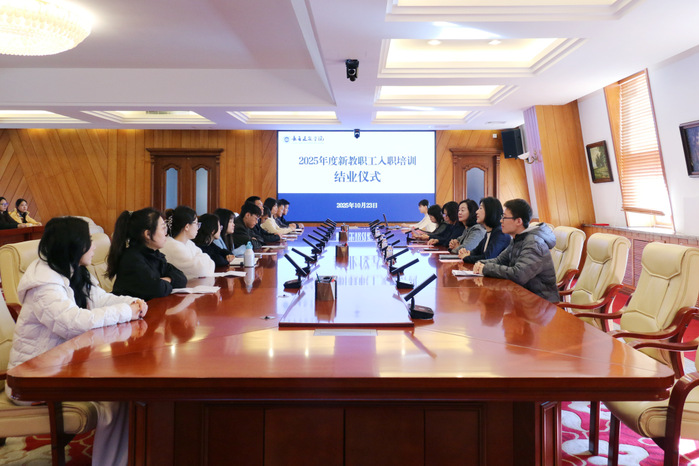 10月23日上午,学校2025年新教职工入职培训结业仪式在行政楼六楼会议室举行。学校副校长孟祥萍、校长助理邹建奇,教师教学发展处、人力资源处工作人员及本期参培学员参加。结业仪式由人力资源处处长赵月主持。