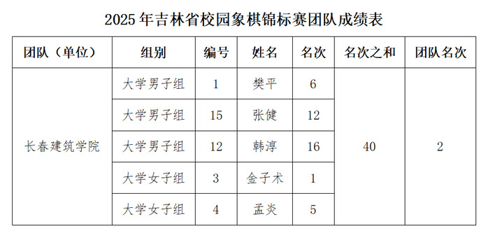 学校象棋队参赛队员在教练员老师指导下,凭借扎实棋艺功底与沉稳竞技心态一路突破,最终斩获大学组团体亚军。其中建筑与规划学院金子术同学摘得大学女子个人赛冠军,樊平、孟炎同学及城建学院韩淳、张健等同学分获前八名,以实力书写长建学子棋坛佳绩。
