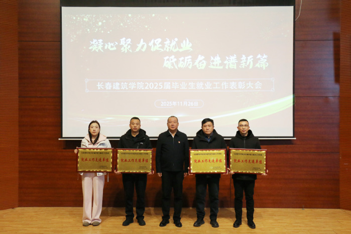 会议对2025届毕业生就业工作先进单位公共艺术学院、城建学院、建筑与规划学院、管理学院、电气信息学院、土木工程学院进行了表彰。