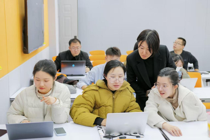 王芳老师引领全体教师开启沉浸式实操环节。她从雨课堂建课的步骤入手,解析AI辅助课程设计的核心功能,并组织参训教师进行现场演练。教师们亲身体验了从课程搭建到内容生成的完整流程。两位老师全程指导,实时解答操作中的具体问题,确保每位教师真正掌握相关技能。未来,管理学院将以AI教学应用创新为引领,系统推进课程内容与模式的升级,聚力打造管理类标杆课程。