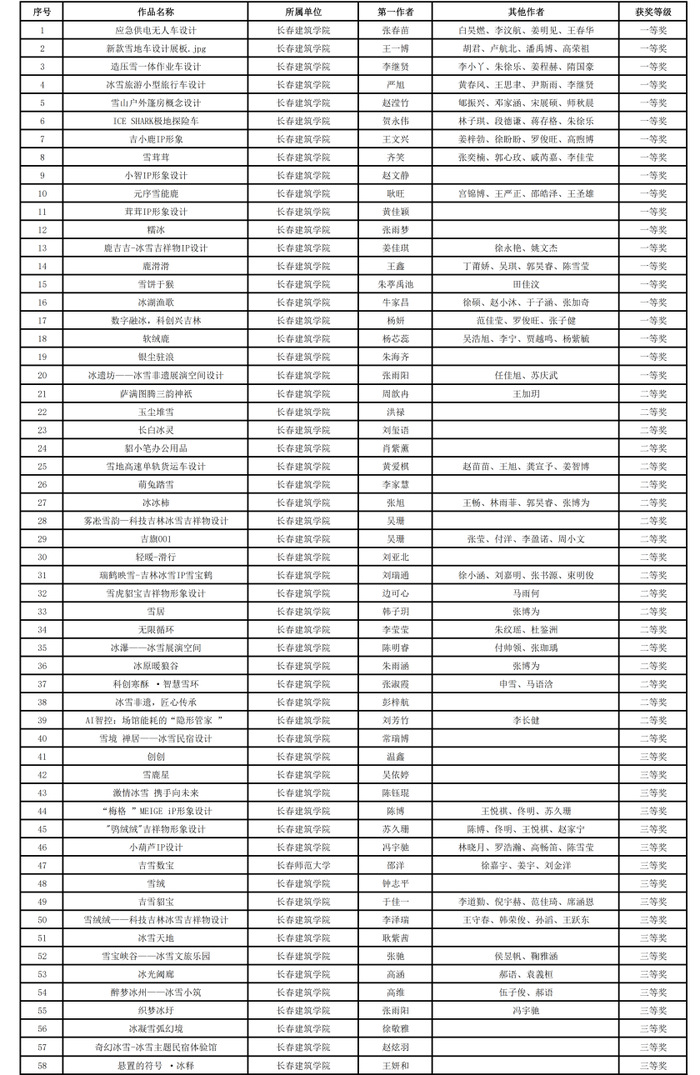 学校高度重视此次赛事,精心组织、周密部署,各教学单位广泛动员,专业教师全程悉心指导。参赛师生紧扣赛事主题,将专业知识与冰雪产业需求深度融合,在冰雪视觉设计、环境空间创意、数字文创等方向精心打磨作品,既体现吉林地域冰雪文化特色,又融入前沿设计理念与技术应用,最终在激烈角逐中斩获佳绩。
